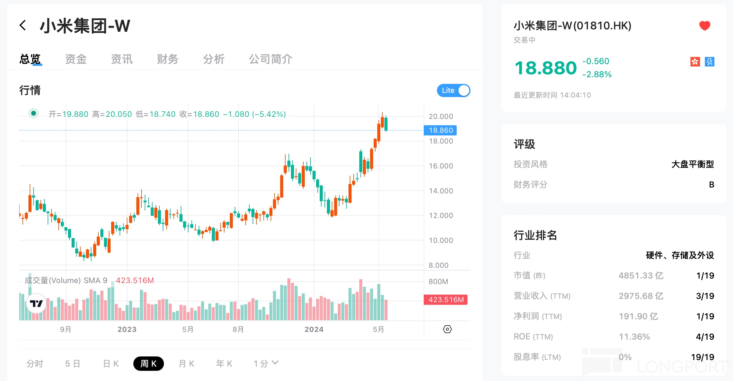 小米手机出货量坐稳全球第三叠加 SU7 销量火爆,股价较最低位累涨 70%,能否持续飙升?