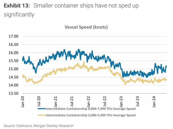 但大摩很快就发现这个判断与实际情况出现了偏差,因为红海航线中断引发的运力短缺,很可能是结构性短缺。