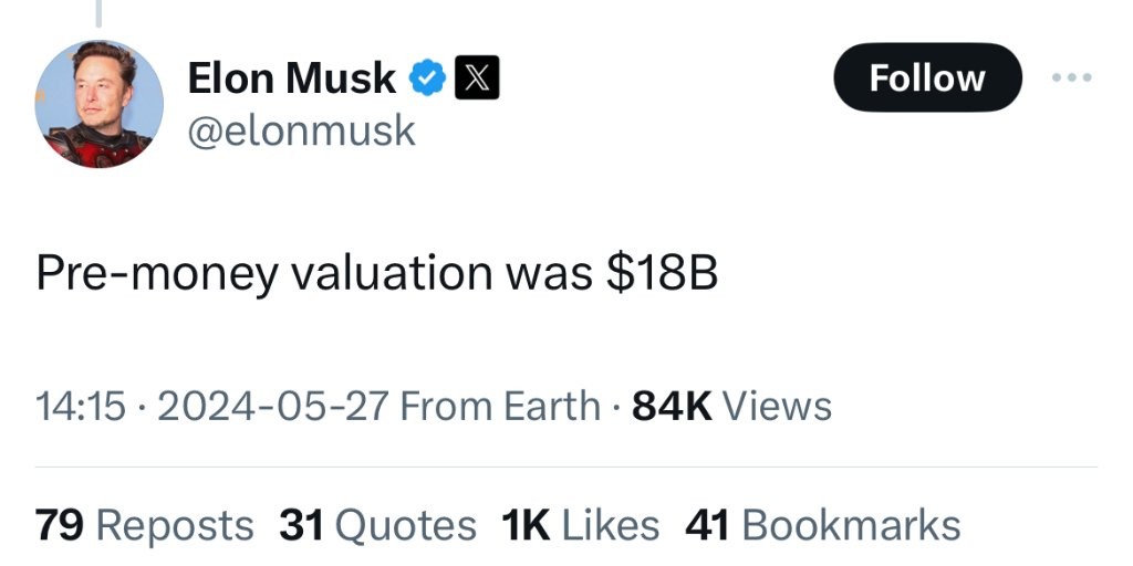 马斯克于 5 月 26 日宣布了这一 B 轮融资,距离 xAI 首次亮相不到一年的时间,标志着对人工智能工具开发领域的一次重大投资。