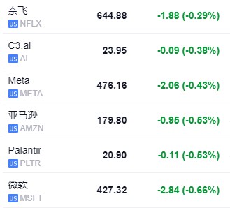 包括微软、苹果、英伟达、谷歌母公司 Alphabet、亚马逊、Facebook 母公司 Meta、特斯拉在内,科技巨头 “七姐妹” 并未齐涨,上周五领涨的特斯拉早盘表现最差,早盘曾跌超 3%。