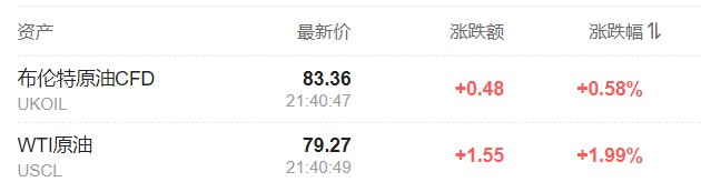 油价涨幅继续扩大,WTI 原油涨近 2%。