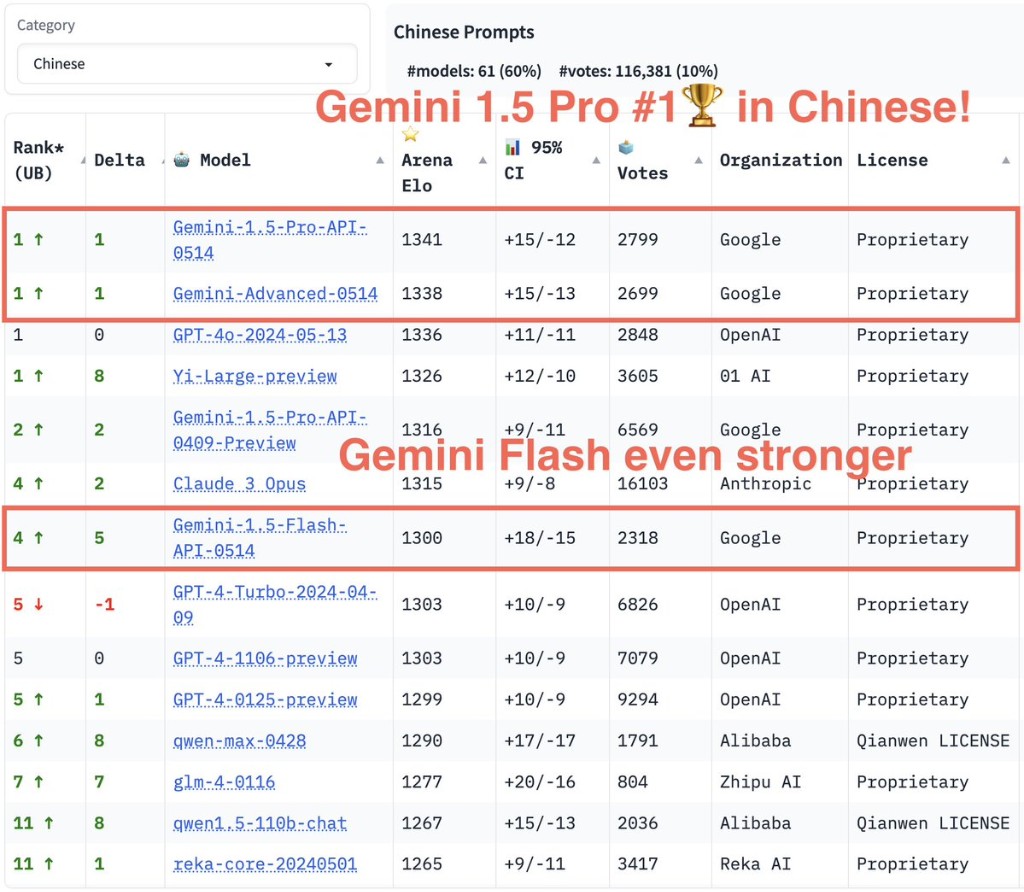 谷歌 Gemini“悄悄变强”,快速缩小与 GPT-4o 差距,中文更是完成了超越!
