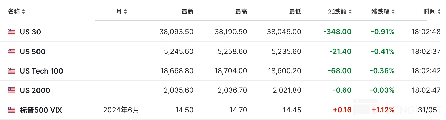 美股盘前,三大股指期货下跌,恐慌指数上涨。