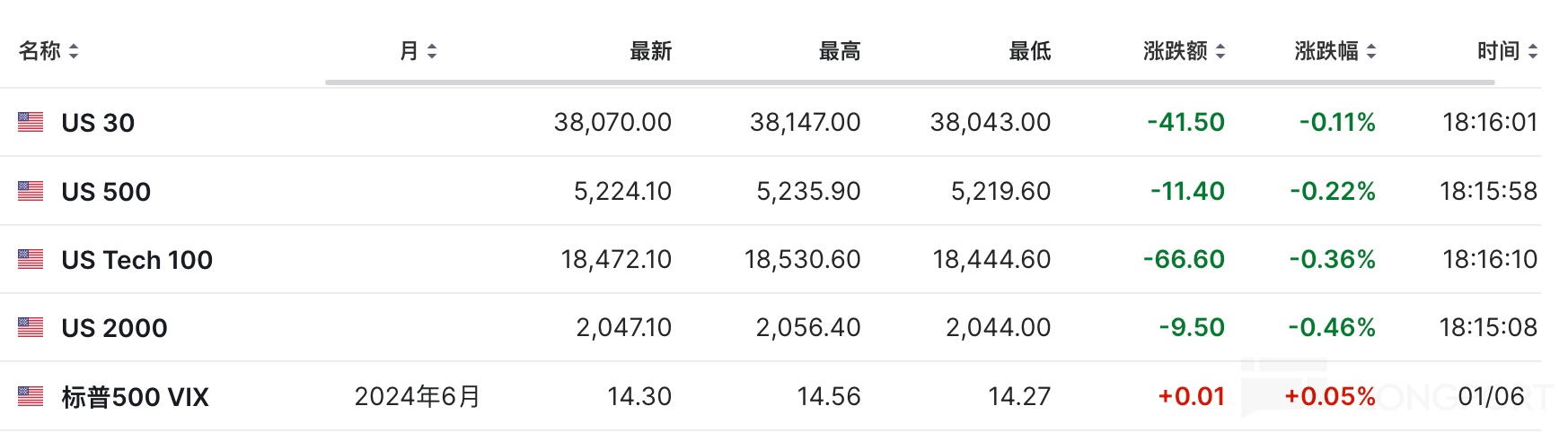美股盘前,三大股指期货下跌,恐慌指数微涨。