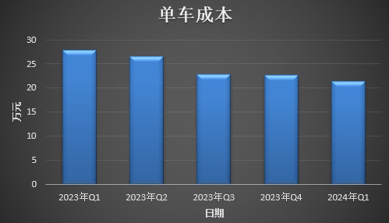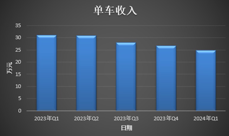 此外,极氪单价最高的车型极氪 009(50-78.9 万元)在今年一季度的销量表现不佳,销量占比从此前的 15%-20% 区间大幅度降至一季度的 4%。这也使得极氪的单车收入环比降低 2 万元至 24.8 万元。