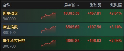截止发稿,恒生指数涨 2.6%,恒生科技指数涨 2.9%,国企指数大涨逾 3%。科技板块迎来大爆发,B 站涨超 18%,联想集团涨 8%,小米、美团、商汤科技均涨超 5%。