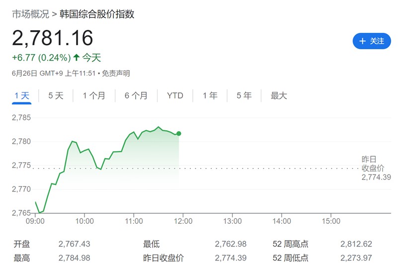 基于这些因素,汇丰将韩国综合股价指数(Kospi)的目标上调约 5%,至 3050 点。Kospi 指数已经飙升至 2022 年初以来的最高水平,截止发稿已至 2781.16 点。