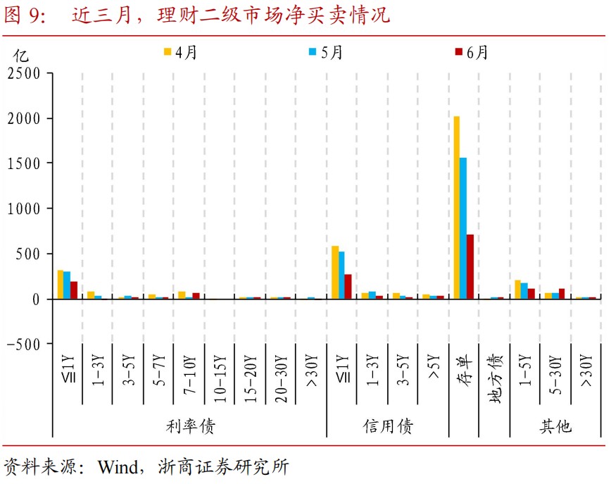 (2)农商行:显著增持 1 年以内短债和存单,长债以兑现收益为主。5 月利率表现震荡,农商行大幅买入长债,以减少买入短债、存单等券种的方式调整持有结构;6 月利率下行以来,农商行开始兑现收益。