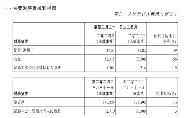 6 月 28 日,港股吉利汽车发布的 2024 年第一季度财报。
