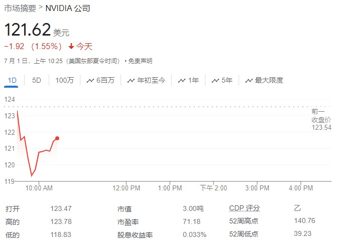 7 月 1 日周一,美股三大指数走软,道指、标普 500 大盘高开低走,纳指多次短线转跌。