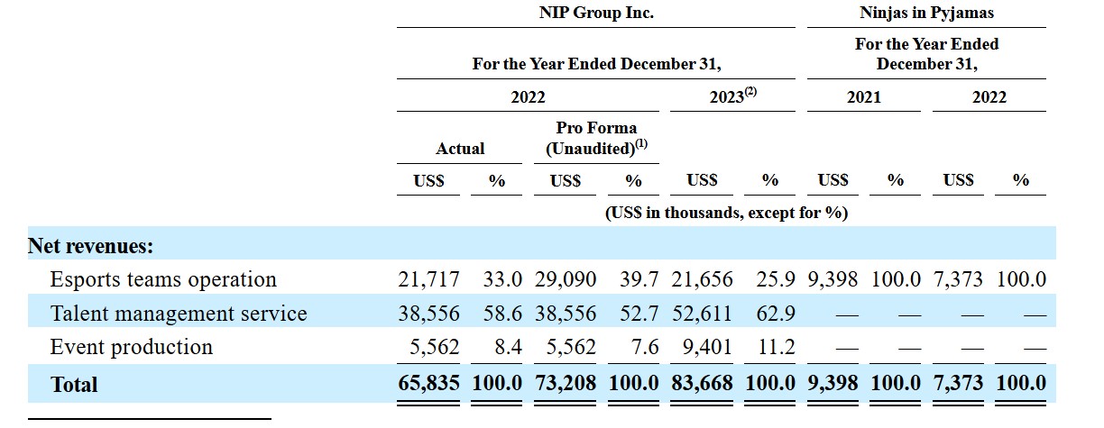 Faze Clan 的商业化水平则稍稍好于 Astralis。据 Faze Clan 退市前的最后一份财报 (2023 年三季报) 数据显示,其 2023 年前三个季度的总收入为 3674.9 万美元,同比下滑 24%,其中品牌赞助收入为 1461.6 万美元、内容收入为 965.8 万美元,消费者产品收入为 85.2 万,电子竞技收入为 1153.7 万美元。