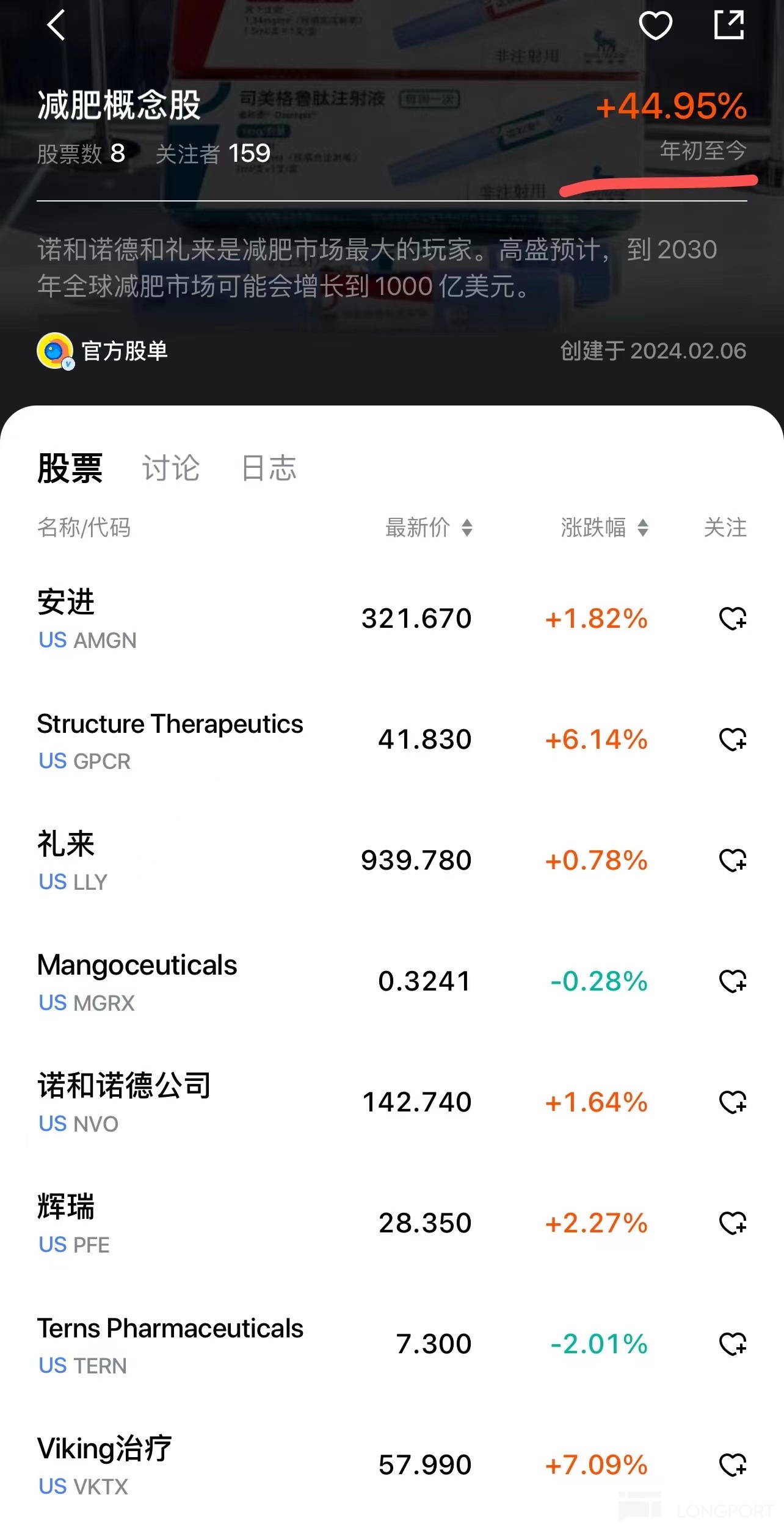 减肥概念股 2024 年至今整个板块涨 44.9%: