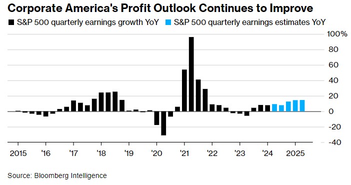 Bloomberg Intelligence 汇编的数据显示,分析师估计,标普 500 指数成分股公司第二季度利润将较上年同期增长 9.3%,这将是自 2021 年最后三个月以来的最大增幅。