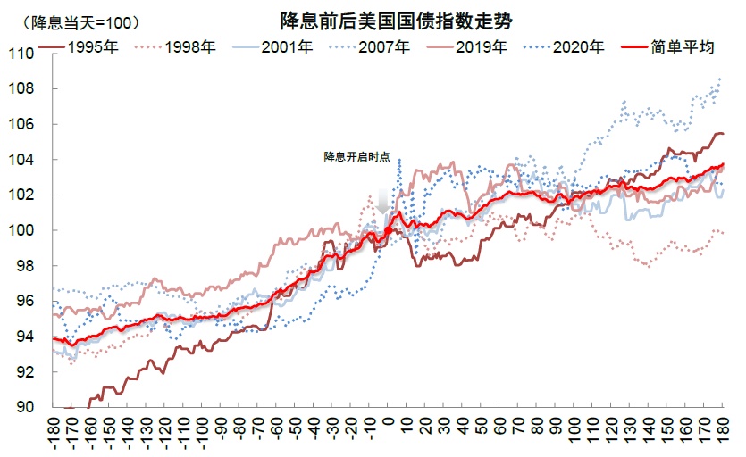 图表:历史经验显示美债涨幅更多体现在降息前到降息 3 个月内