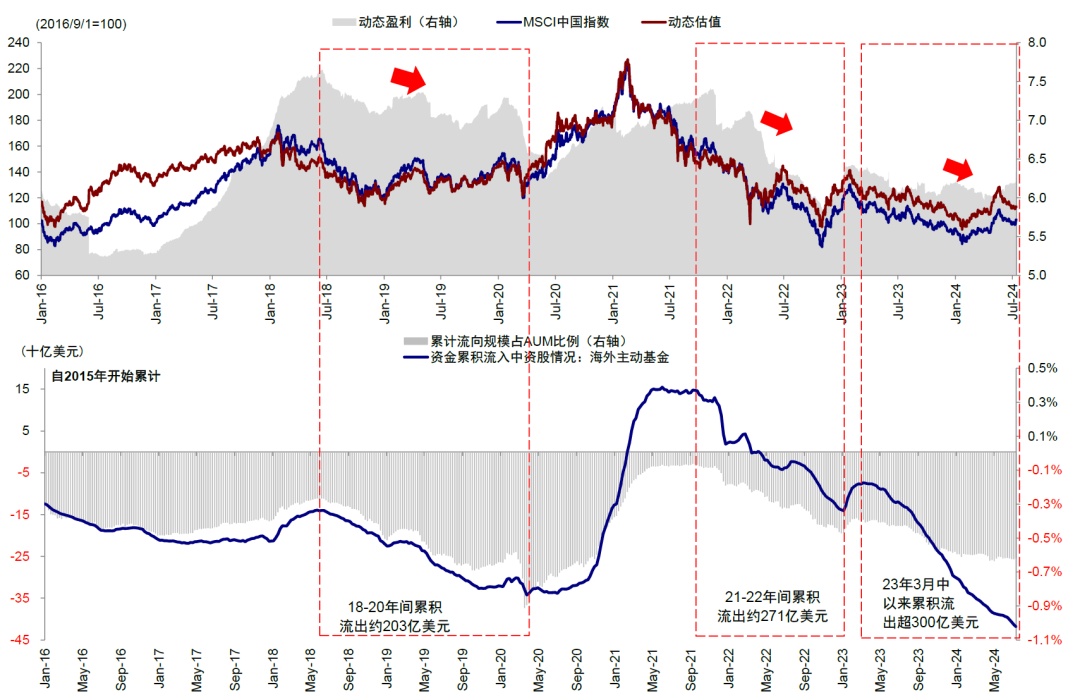 ► 资金流向:外资持续流出,长线外资回流需要基本面配合。2018-2020 年主动外资持续流出中资股市场,该阶段累计流出约 203 亿美元。2019 年 7 月开始降息外部流动性改善,外资也并未大举回流。直到 2020 年 9 月后基本面转好、盈利明显增长后外资才开始回流。当前主动外资已连续 61 周流出中资股市场,2023 年 3 月以来累计流出超过 300 亿美元。海外资金整体低配中资股情况下,回流仍需基本面配合,外部流动性宽松并非外资大幅回流的主导因素。