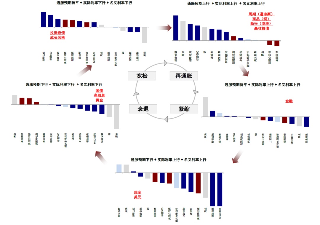 图表:降息周期中不同的基本面特征也会对应不同的资产表现
