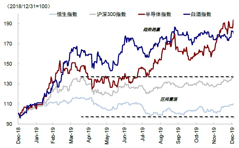 图表:2019 年的结构性行情更为清晰,例如半导体等等都有较强且清晰的驱动因素