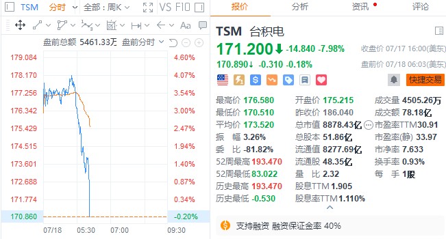 半导体股盘前涨幅收窄,一度大涨 4% 的台积电转跌,欧股反弹