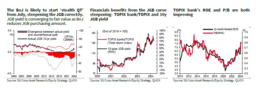 在当前环境下,法兴银行更加看好日本金融板块和价值投资风格股票。金融股方面,Benzimra 认为: