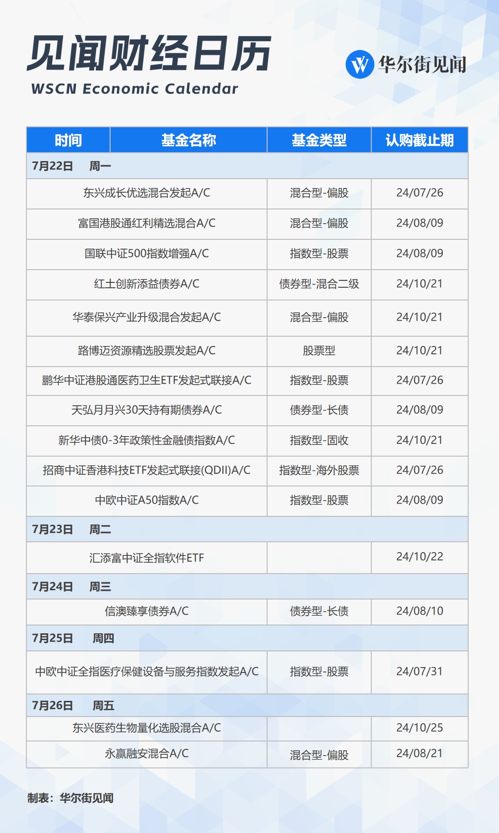 7 月 22 日-7 月 27 日当周重磅财经事件一览,以下均为北京时间: