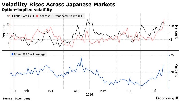 日元汇率一直在波动不止,由于交易员解除了专注于日美利差的头寸,日元在一个月内从 38 年低点升至两个月高点。日元上周的升值幅度非常之大,以至于在投资者重新评估其杠杆押注之际推高了人民币汇率,并使得从日股到黄金和比特币等资产纷纷受到打击。