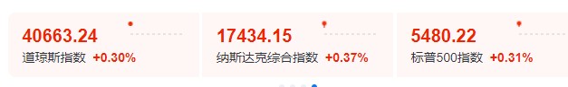 截止发稿,纳指涨 0.29%,标普 500 指数涨 0.23%,道指涨 0.26%。
