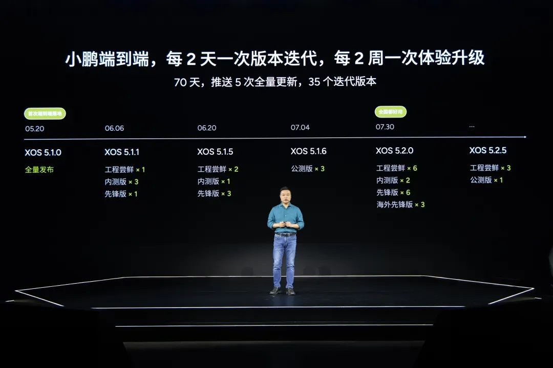 何小鹏指出,目前 XNGP 内部的迭代速度已经达到了两天一个版本,「以前是四五个月正式升级一次」。
