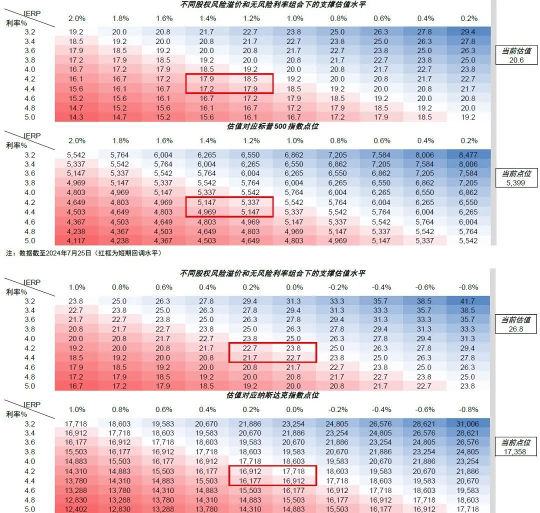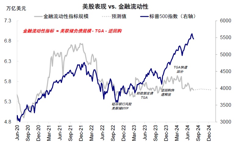 图表:根据我们金融流动性模型以及美股估值盈利模型测算,标普 500 指数回调压力点位在 4900~5100 点左右