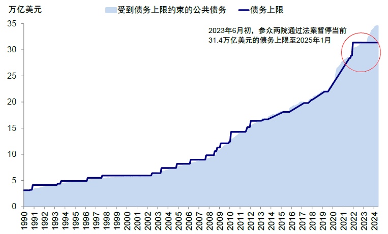 图表:2025 年 1 月债务上限或将再度限制政府宽信用的空间