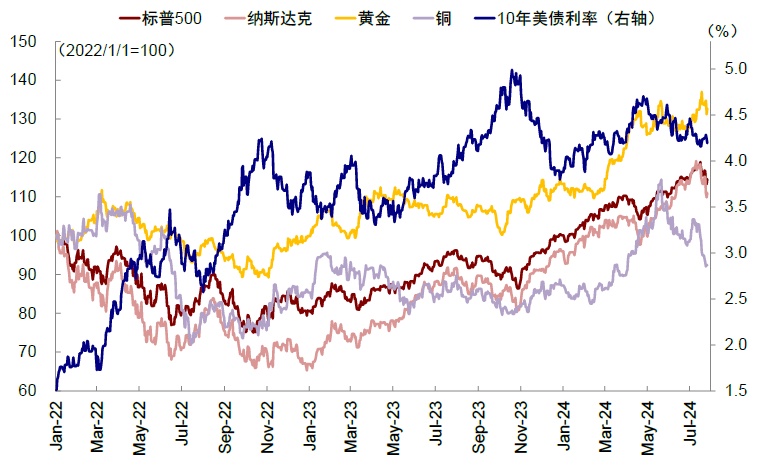 图表:7 月 24 日,黄金、铜和美债伴随美股共同下跌,并非典型 “衰退交易”