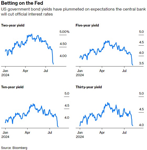 美联储下一次会议将在 9 月 18 日举行,50 个基点的降息几乎已被期货市场完全消化。尽管美联储主席鲍威尔在 7 月 31 日的新闻发布会上淡化了首次大幅降息的可能性,但这种观点可能不再成立。美联储意识到,维持较紧的官方利率可能太久了,不过,它也不需反应过度,尤其是在选举年。宽松周期通常以降息 50 个基点开始,而在这次这样的举动或许是合理的,不过,这一举措更应在合适的时间地点及预定的会议上,而不是作为对股市迟来的回调的紧急回应。
