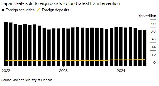 外国证券持有量的减少暗示日本政府可能再次出售美国国债,以此为汇率干预筹集资金。今年 4 月和 5 月,日本政府也曾采取类似行动,当时花费了创纪录的 9.8 万亿日元来支持日元。