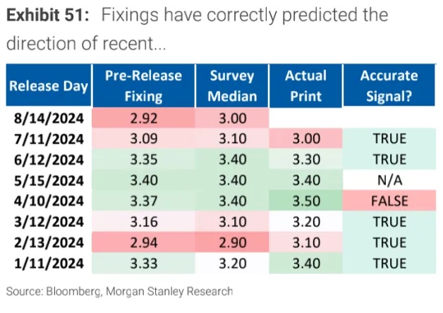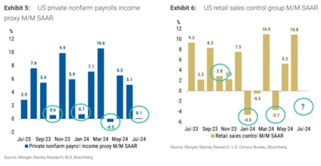 对于零售数据,MS 认为由于 7 月非农的收入指标环比较弱,零售销售不及预期的可能性较大。(市场预期环比 0.3%,前值 0%)