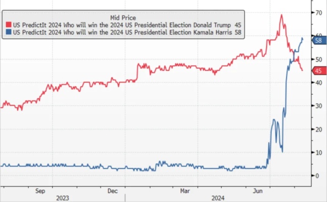 最近市场太过于动荡,以至于美国大选的热度开始下降。但民调的天平却默默转向,目前哈里斯支持率已经赶超特朗普(58%vs 45%)