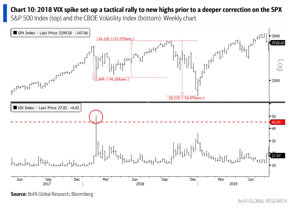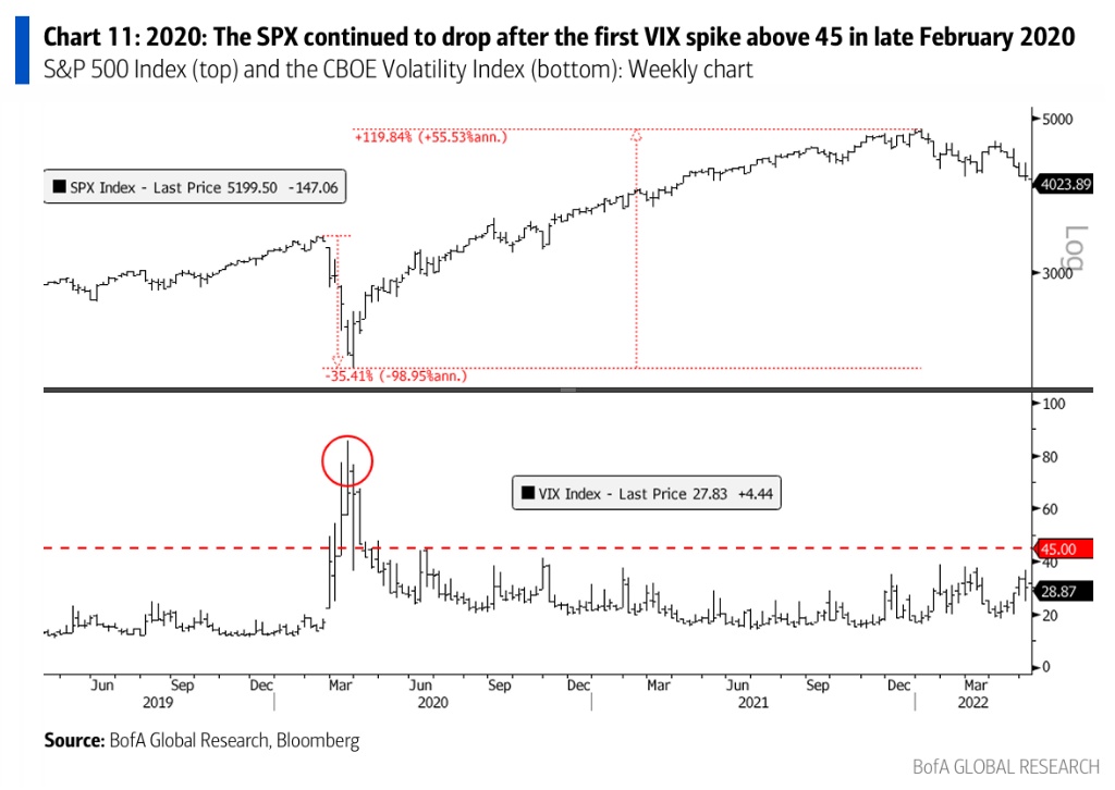 之后,市场出现更深的回调,标普 500 指数下跌了 20.2%,但这次下跌并没有导致 VIX 指数超过 45 点。