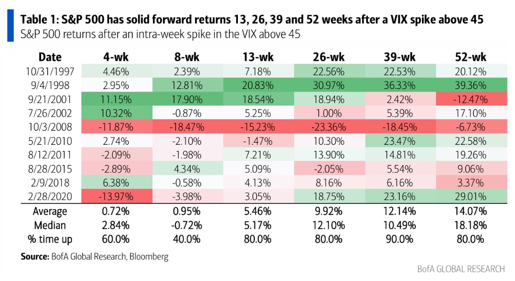 回顾过去 VIX 指数超过 45 的恐慌性飙升