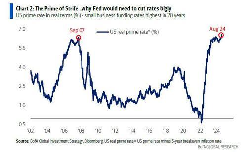 与此同时,小企业作为经济活力的重要组成部分,其借贷成本直接受到基准利率的影响。当前,美国的实际基准利率高达 6.5%,为本世纪最高水平。这不仅增加了小企业的运营成本,也可能抑制了它们的扩张和创新能力。