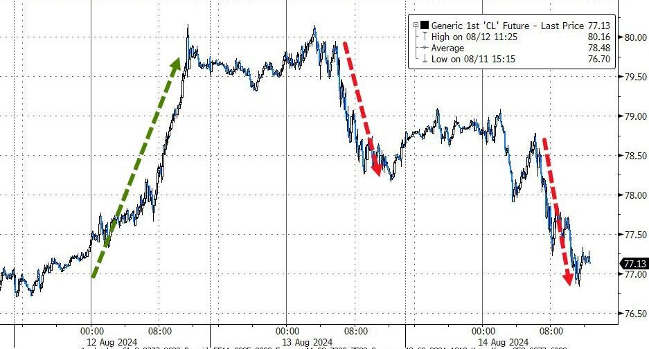 美国EIA原油库存意外增加,叠加昨日IEA月报显示油需放缓,双重打击令美油第二日下跌且盘中跌超2%,布油跌超1.15% 失守80美元: