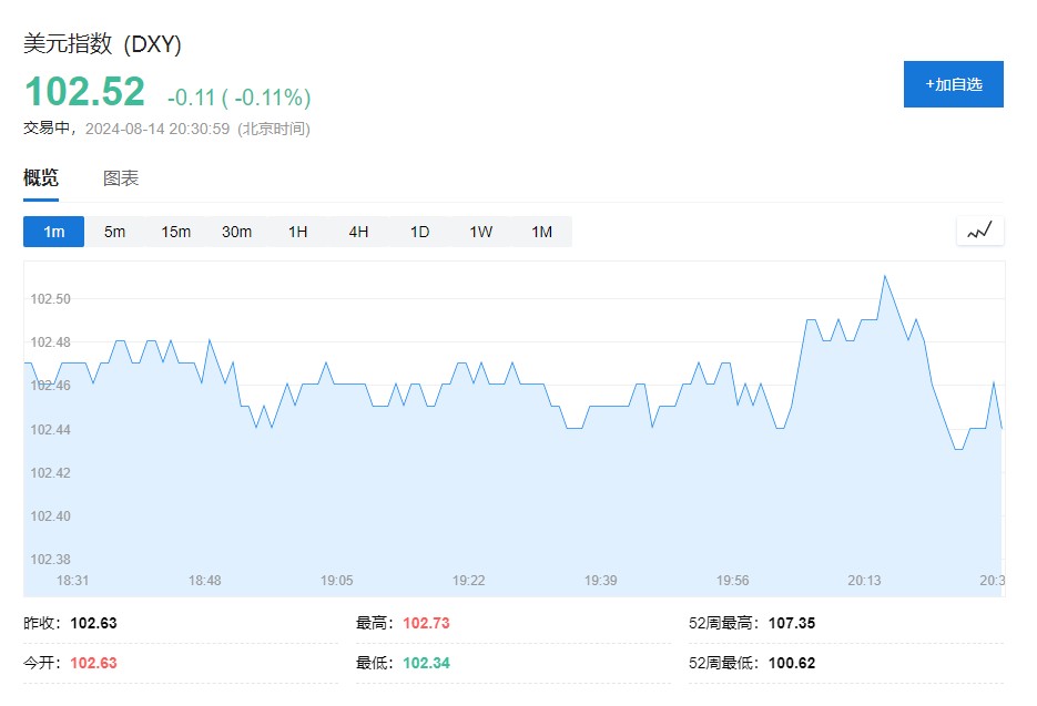 美元指数震荡,现报 102.42,日内跌约 0.2%