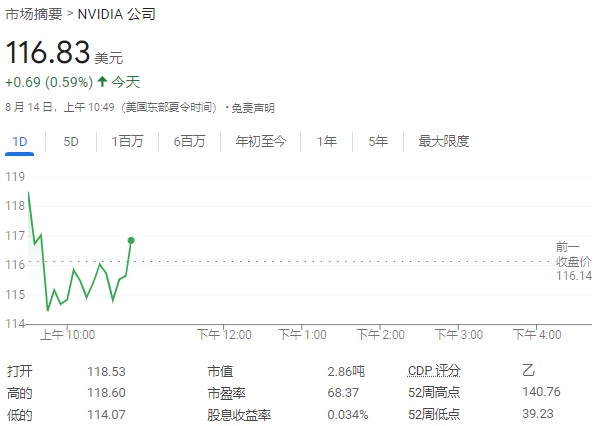 科技股 “七姐妹” 涨跌不一。英伟达盘初涨近 2%,现涨幅缩窄不足 1%,特斯拉、谷歌跌逾 1%。