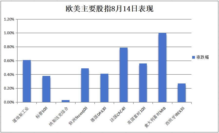 目前,欧股涨幅些许收窄,德国 DAX 指数涨幅回落至 0.2%。