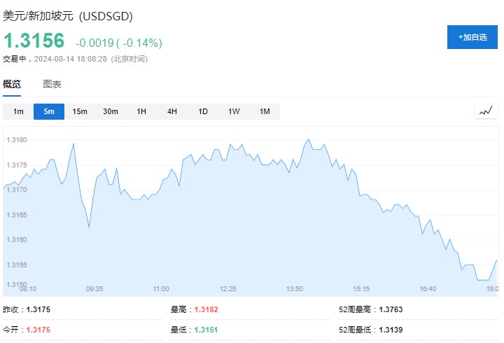 新加坡元升至 18 个月高点,成为今年以来在亚洲货币中表现第二好的货币,新加坡元/美元日内最高至 1.3151。