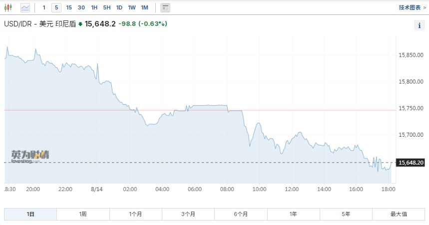 印尼盾/美元上涨近 1% 至 15675,为去年 12 月以来的最佳单日涨幅。
