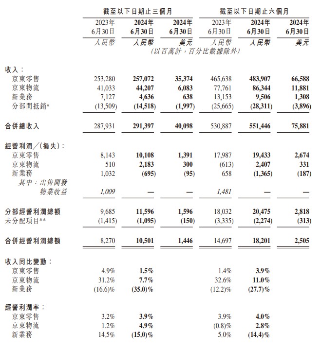 8 月 15 日,京东集团公布 2024 年第二季度业绩。结果显示: