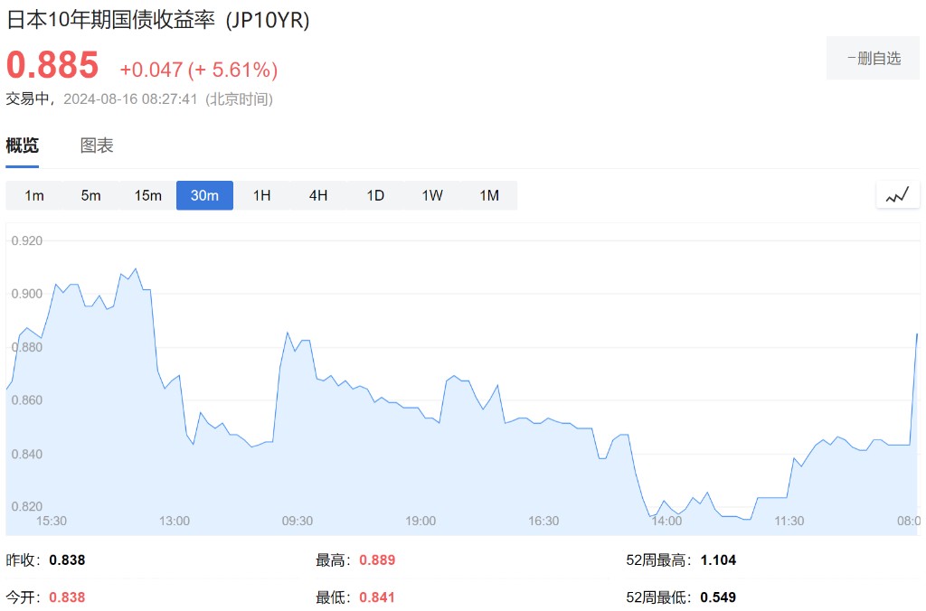 日本国债收益率大涨,截至今早 8:30 日本十年期国债收益率上涨 4.7 个基点。
