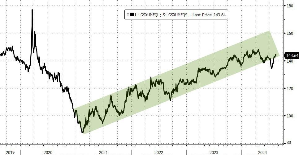 Pasquariello 说,他总是被那些在交易机制发生变化时不会中断的趋势所吸引。他之前提到过,高盛的高质量公司与低质量公司交易对。当他承认自己对市场的总体走向没有太大信心时,他就不会忽视这个主题。