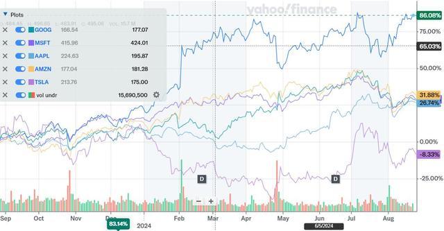 Meta 今年在科技股中表现突出,股价累计涨幅约 51.2%,仅次于英伟达。扎克伯格成功地向投资者传达了公司 AI 整合的愿景,认为 AI 正在提升核心业务的数字广告表现,且帮助他们超越谷歌、微软、亚马逊等同行。Meta 二季度财报显示,营收和广告收入均超预期,显示出巨大的投资回报,继续增强投资者信心。