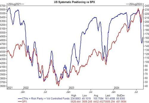 我们估计本周每天都有 170 亿美元的非情绪化需求来自机器交易和企业回购。当前有非常积极的持续三周的美国股市交易窗口,直到 9 月 16 日。每个人都回到了市场中。美股的系统性策略现在已经在下行方向上的敞口过度了。