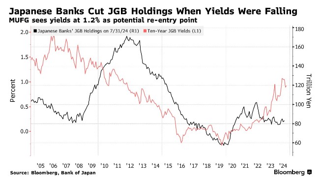 随着日本央行开始加息和削减债券持有量,全球交易员都在密切关注日本金融机构是否会重新大举买入日本债券的迹象。由于通胀抬头,三菱日联金融预计,日本央行行长植田和男将在政策正常化方面取得稳步进展,下一次加息最早可能在今年进行。