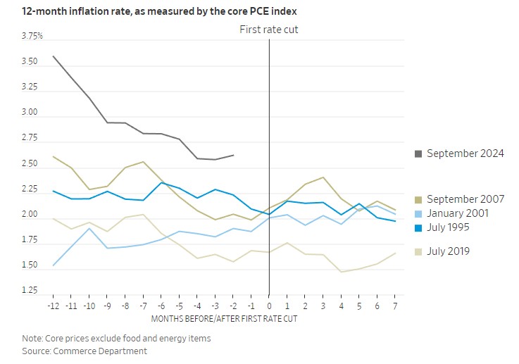 芝加哥联储行长古尔斯比上周接受采访时表示,官员们需要考虑的是,在通胀率明显接近 2% 且失业率高于多数美联储官员预期的水平之际,是否还想要在整个降息周期中采取最严格的限制措施。当金融市场对经济前景表现出更大的担忧时,负责制定利率的联邦公开市场委员会通常会以更大的幅度降息,比如 2001 年初和 2007 年全球金融危机初期的情况。